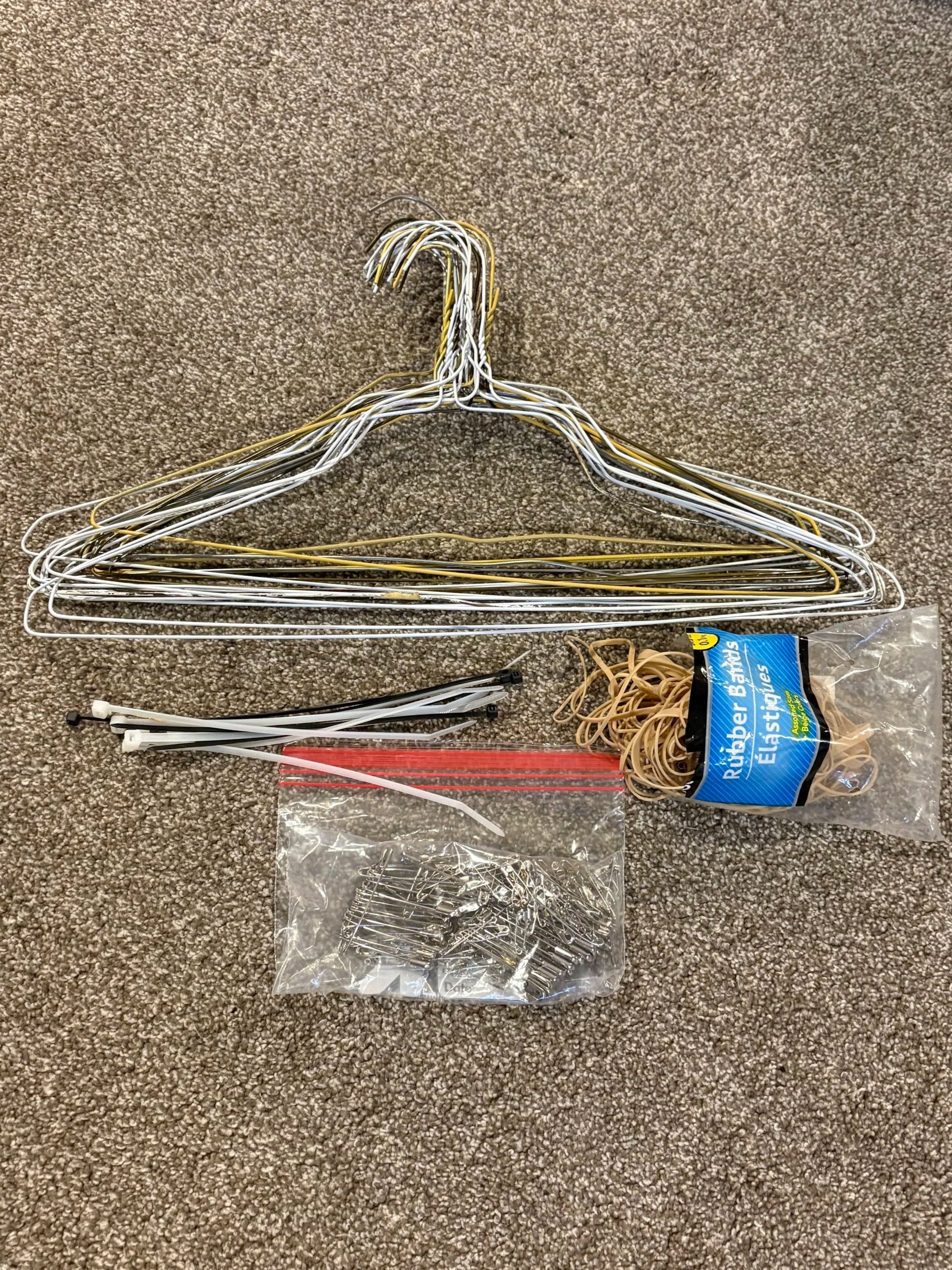 Zip ties or rubber bands (to keep shoes together)